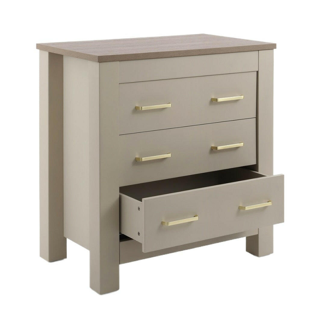 Discover the perfect blend of style and functionality with the Bordeaux Nursery Furniture Set from the Charnwood Collection by BabyStyle. Designed to create a cosy and nurturing environment for your little one, this beautifully crafted set features a soft oatmeal finish with co-ordinating wood-effect details, bringing warmth and comfort to your baby’s room. The wardrobe and dresser are elegantly accented with brushed gold handles, adding a touch of subtle luxury to this timeless collection.