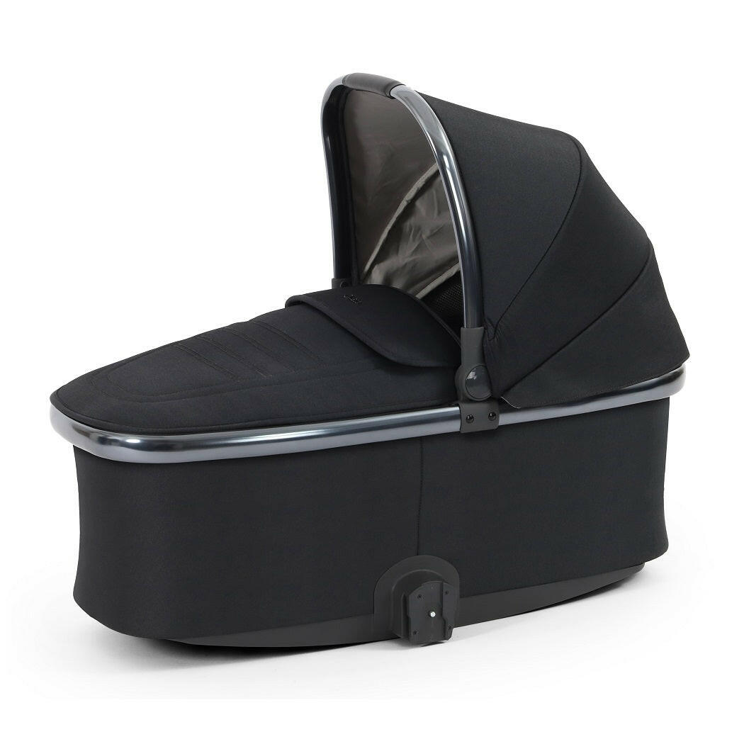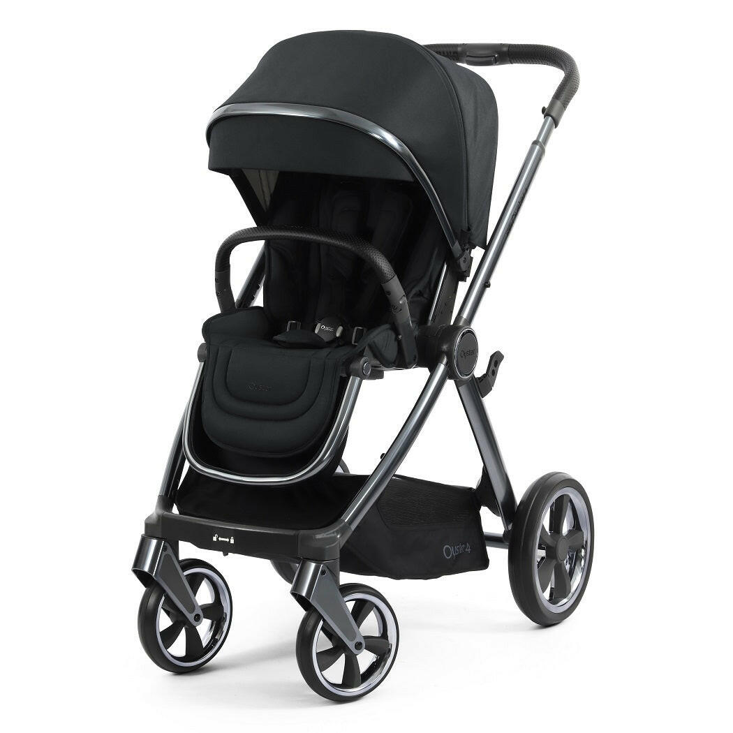 Oyster4 Gunmetal Chassis (Carbonite) Ultimate Bundle includes a matching pushchair, carrycot, changing backpack, footmuff, bottle holder, buggy lock, parasol, rain cover, reversible fur liner and multi adaptors with a Maxi-Cosi Pebble 360 Pro² Infant Car Seat and FamilyFix 360 Pro ISOFIX Base.