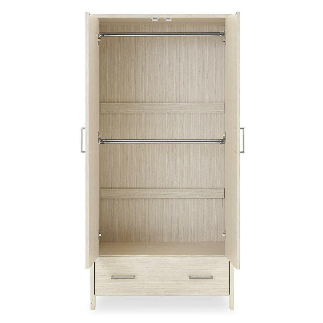 The double wardrobe has a large cupboard space fronted by two soft closing doors and inside are two sturdy hanging rails for your little one’s special outfits. A large full width drawer underneath offers the perfect storage solution for those items which cannot be hung up.