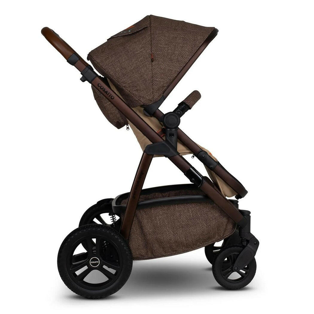 Cosatto`s Wow 3 Everything Bundle (Foxford Hall) comprises of Wow 3 chassis, seat unit, carrycot, Acorn i-Size car seat, adaptors, rotating base, ultimate footmuff and utimate changing bag.