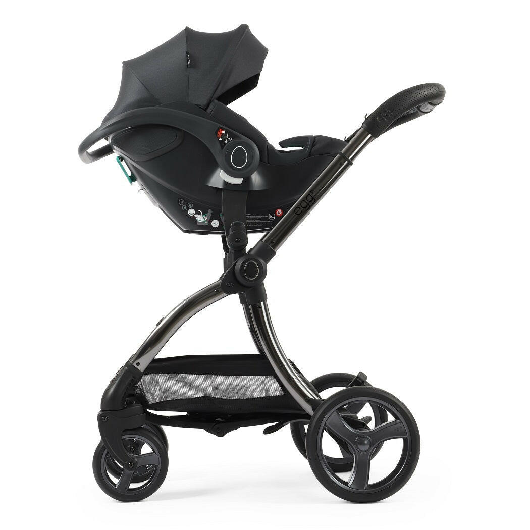 egg3® Luxury Bundle (Carbonite) comprises of a carrycot, reversible seat unit, chassis and accessories with a matching egg3 Shell i-size car seat and ISOFIX base.
