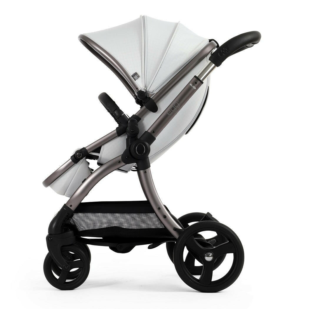 Featuring a ‘one-hand fold’ the egg3 chassis is compact when folded and free-stands, with the handle clear from the ground. Its large puncture-free tyres feature a unique egg-shaped tread pattern so the stroller leaves its mark wherever it goes. Engineered for comfort, superior handling and added durability, egg3 has been fitted with Tru-Ride® technology asstandard for multi-terrain strolling.