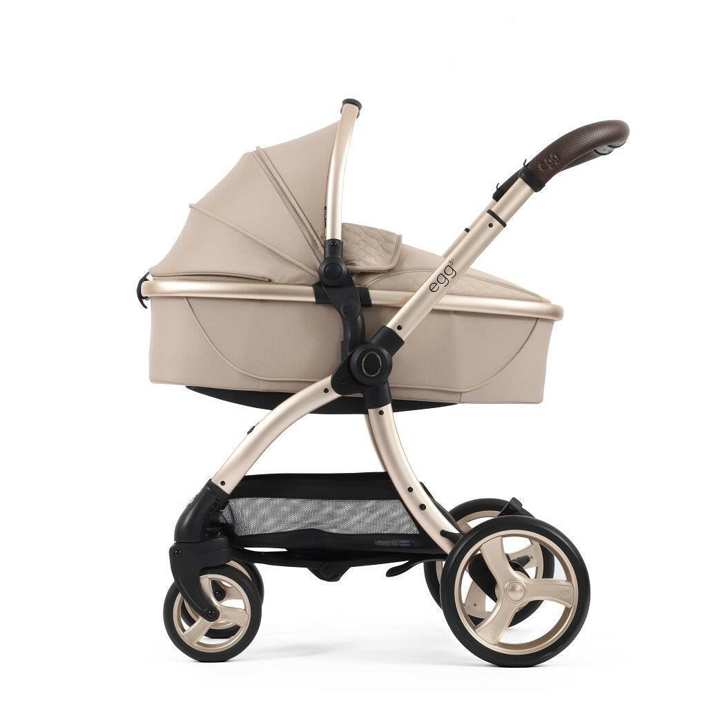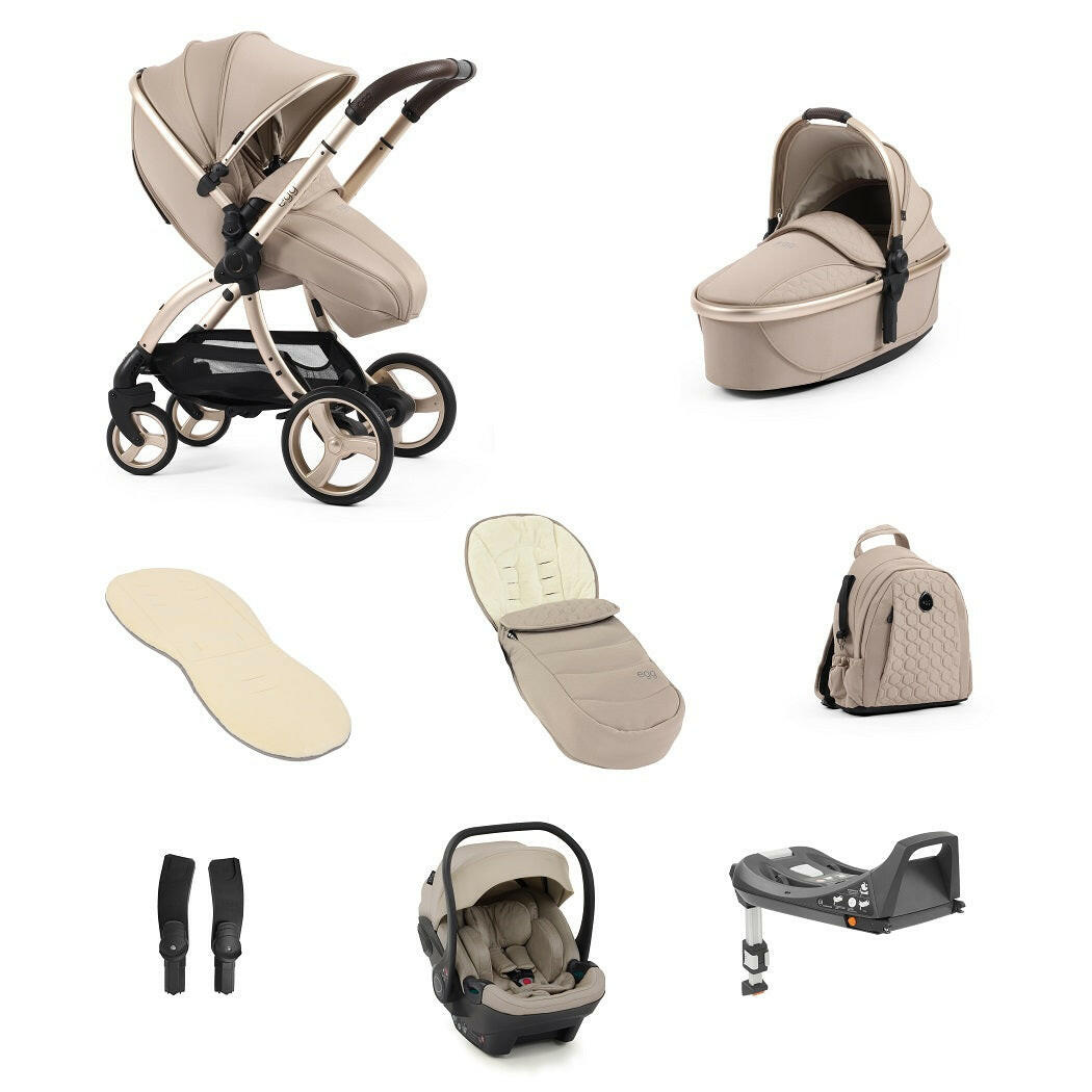 egg3® Luxury Bundle (Feather) comprises of a carrycot, reversible seat unit, chassis and accessories with a matching egg3 Shell i-size car seat and ISOFIX base.