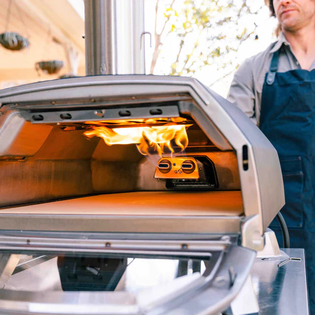 For a convenient and consistent cooking experience, try the Gas Burner for Ooni Karu 16 and Karu 2 Pro. This accessory product slides easily into the rear port to quickly switch your oven into cooking with gas mode.The new low power cooking function enables cooking low and slow pizzas or meat dishes. When you’re looking for a low-maintenance cooking experience look no further than the Gas Burner for Ooni Karu 16.
