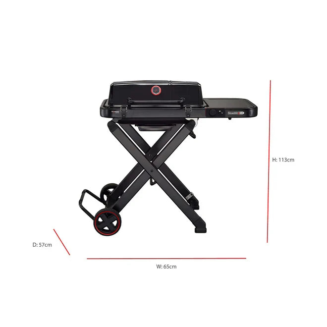 This perfectly compact and foldable grill is ideal for camping, beach trips, and small gardens. Featuring a large flat plate cooking area, chunky side shelf, and built-in thermometer, it ensures precise and versatile cooking. The foldable trolley with heavy-duty wheels makes transport and storage effortless, while the safety lock keeps everything secure whether in use or packed away. Complete with a regulator and hose for quick setup, this portable BBQ is designed for convenience, stability, and great outdoor cooking - wherever you go.