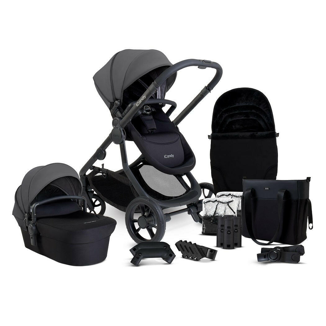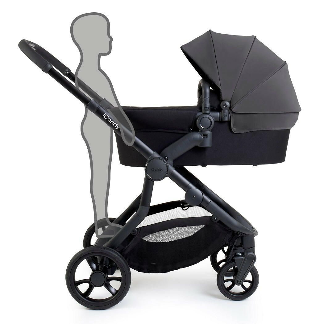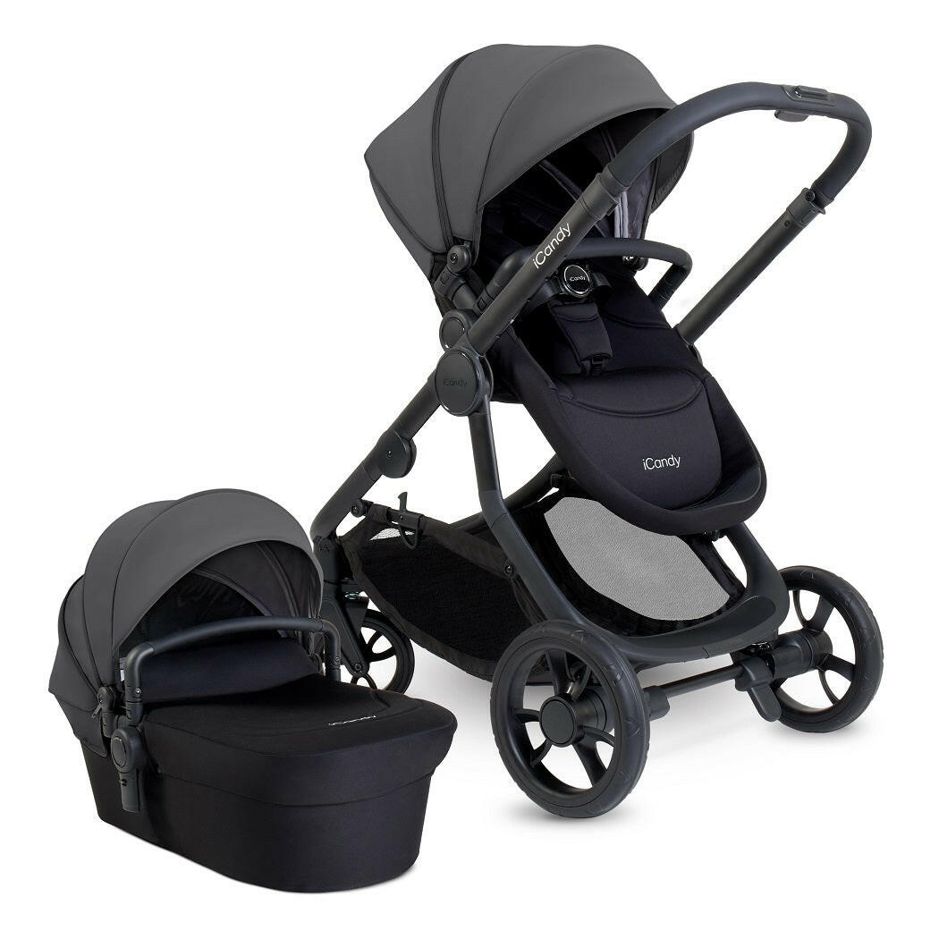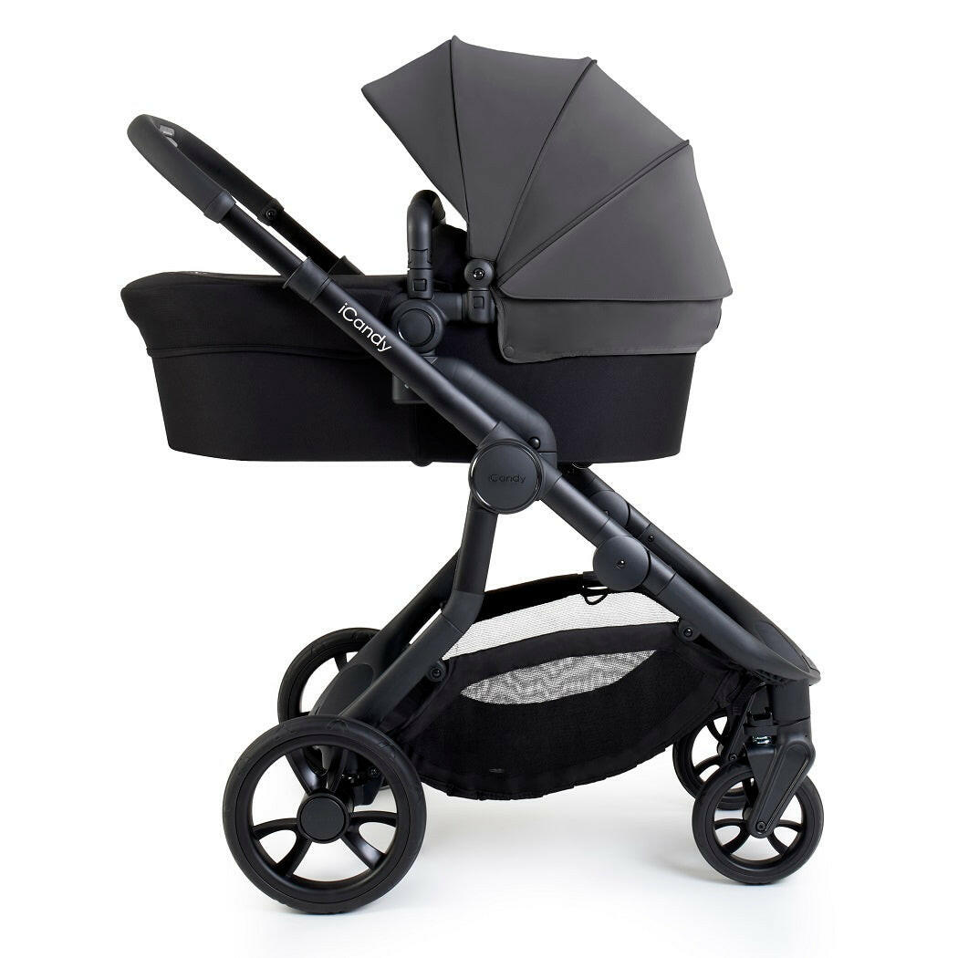 iCandy`s Orange 4 Combo Bundle (Fossil) is a luxury pram pushchair on a jet black chassis with matching accessories. Suitable from birth.