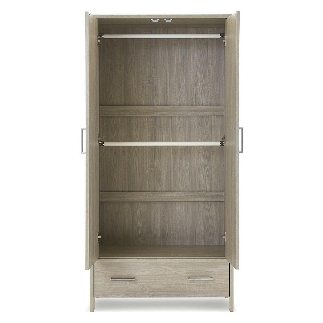 The double wardrobe has a large cupboard space fronted by two soft closing doors and inside are two sturdy hanging rails for your little one’s special outfits. A large full width drawer underneath offers the perfect storage solution for those items which cannot be hung up.