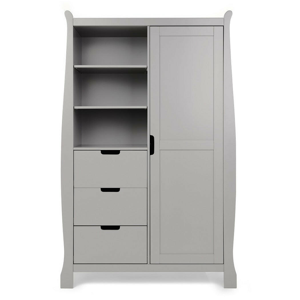Obaby`s Stamford Mini Sleigh 3 Piece Room Set (Warm Grey) comprises of a mini sleigh cot bed with matching changing unit and wardrobe - perfect for parents searching for a chic and elegant option to furnish little one's first nursery.