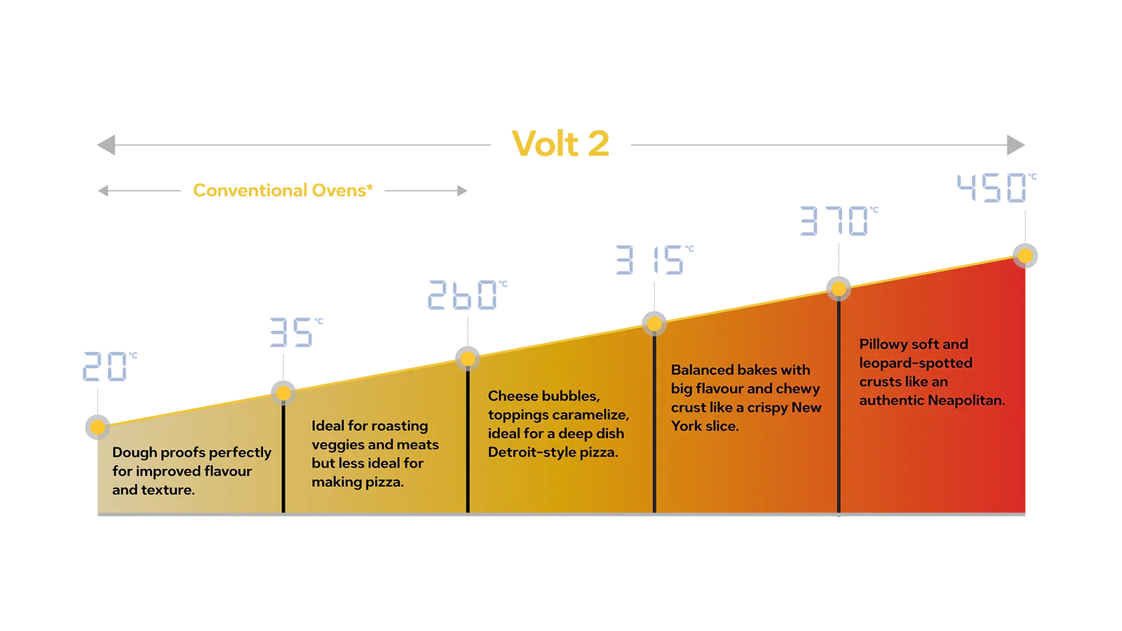 Dough Proofing Mode - use the proofing mode to prove your dough at a steady 20°C- Boost Mode - when making Neapolitan pizza you can supercharge the oven's top heating element to deliver pro-level pizza in 90 seconds