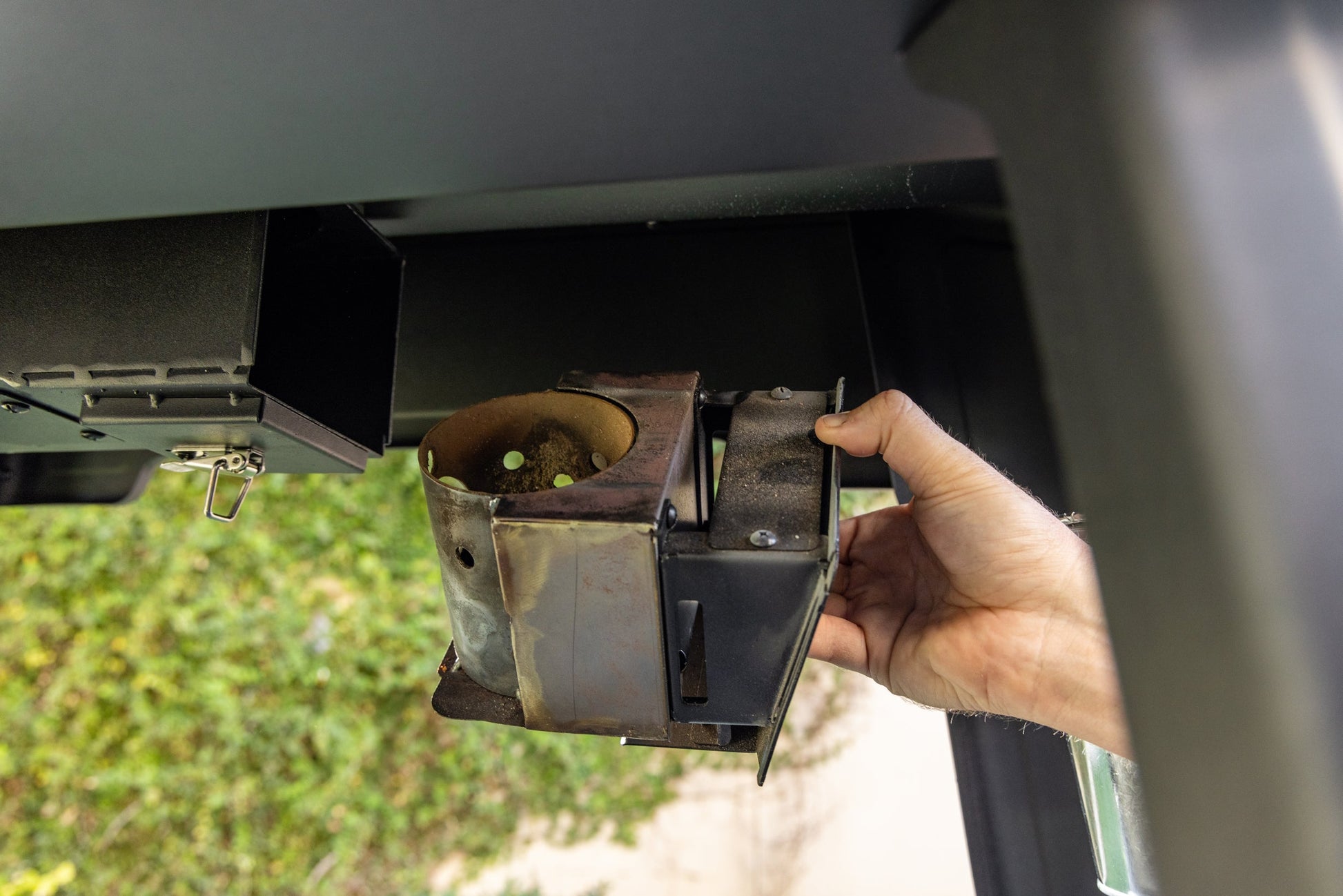 - The grease management system consists of a simple steel bucket. Just replace the foil liner for easy clean up. Foil liners not included
