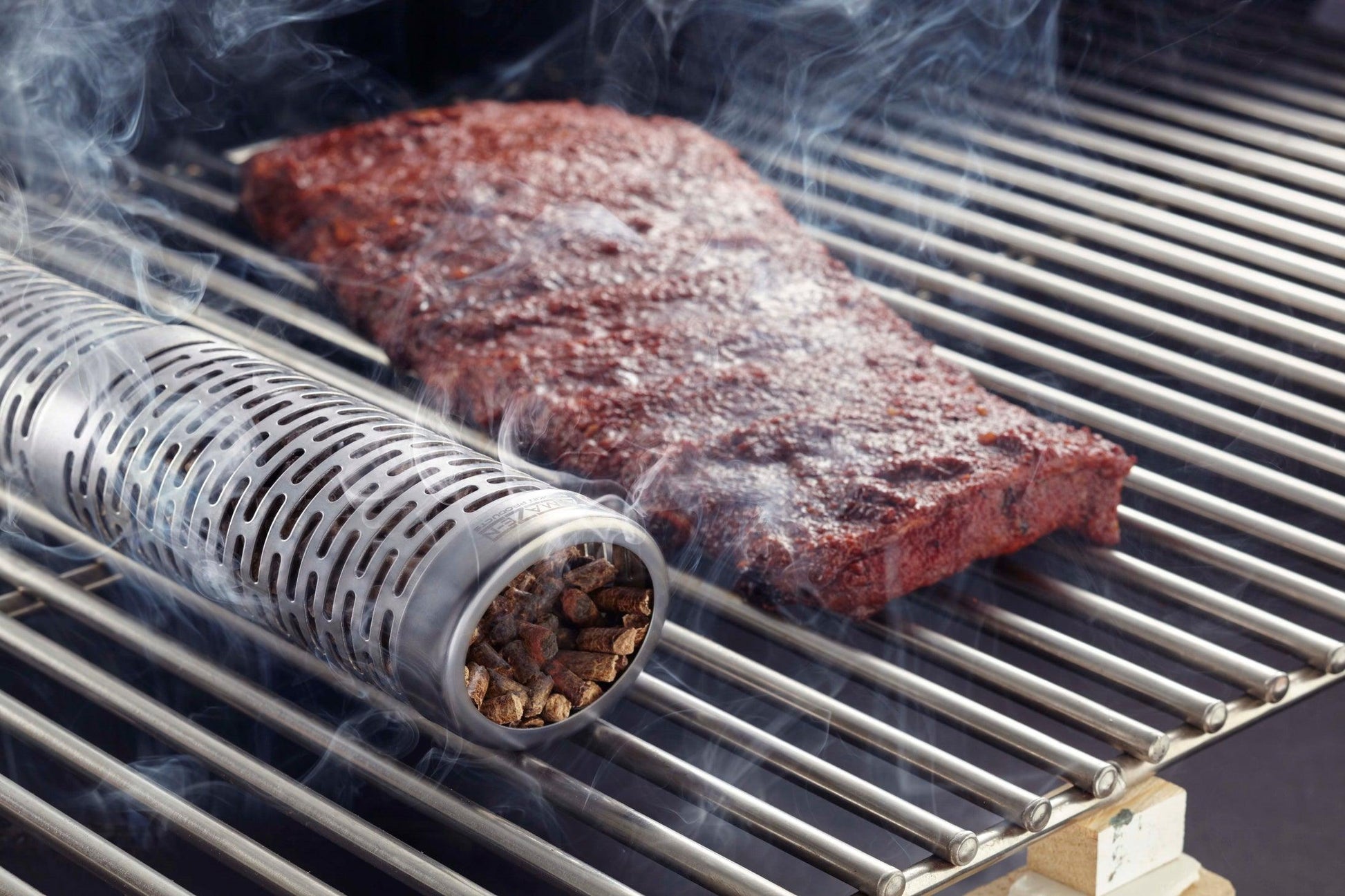 If you like some extra smoke in your bbq, just put some pellets in this expandable tube, light one end and let the pellets create some smoke directly in your cooking chamber.