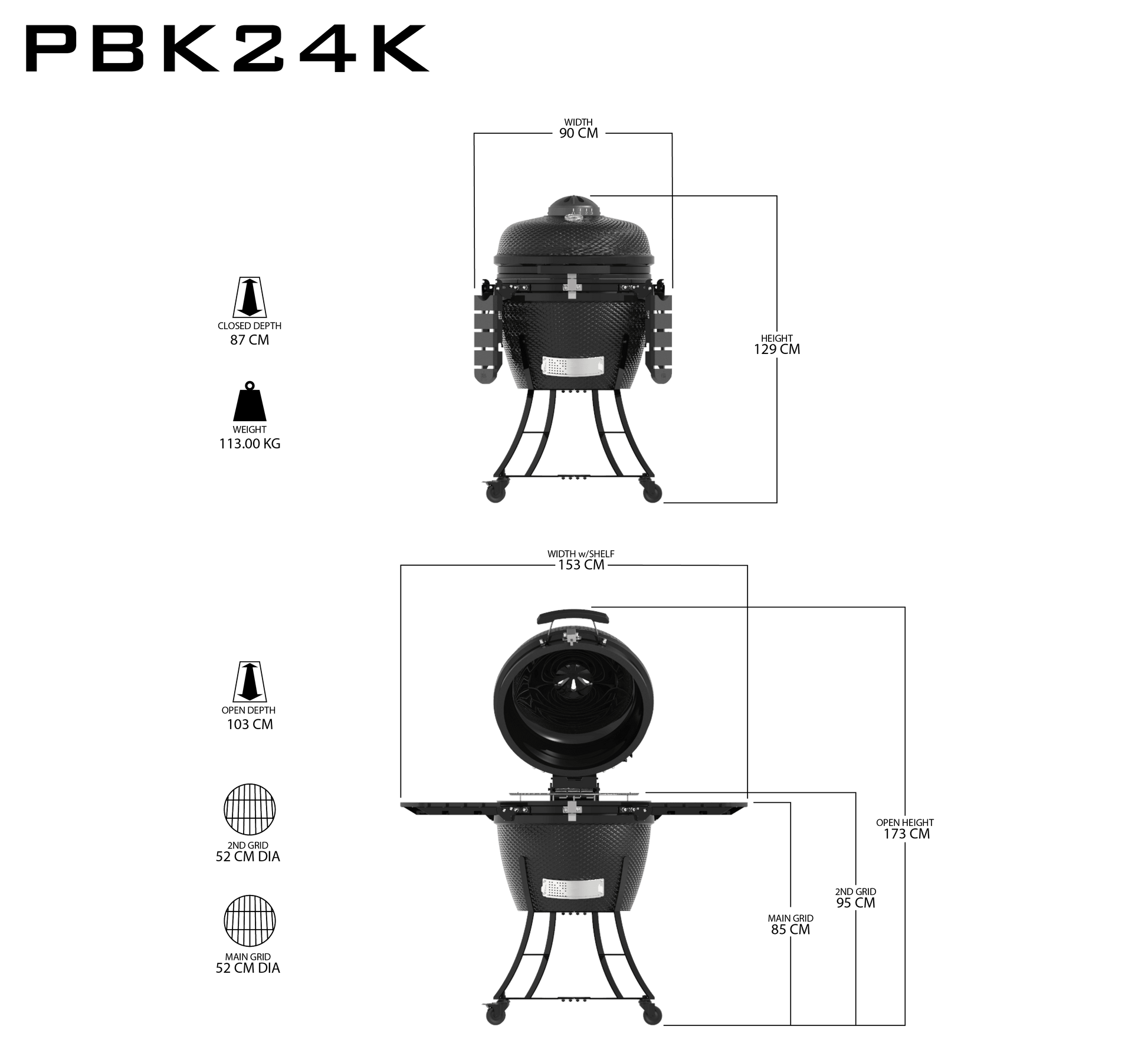 The PBK24 is the largest in its class and offers a high quality design, cooking versatility, and that authentic charcoal flavor. Perfect for large groups or BBQ entertainment, the PBK24 offers 662 sq. inches of two-tiered, stainless steel cooking surface.
